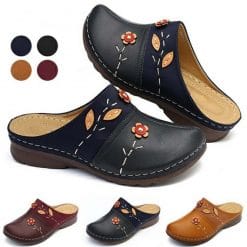 Flowers Leaves Retro Style Women Wedges Slippers